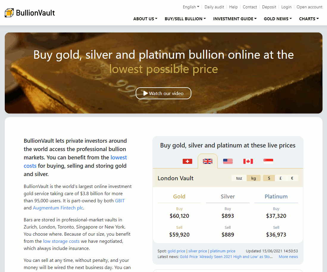 Go to the main home screen at www.bullionvault.com
